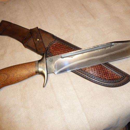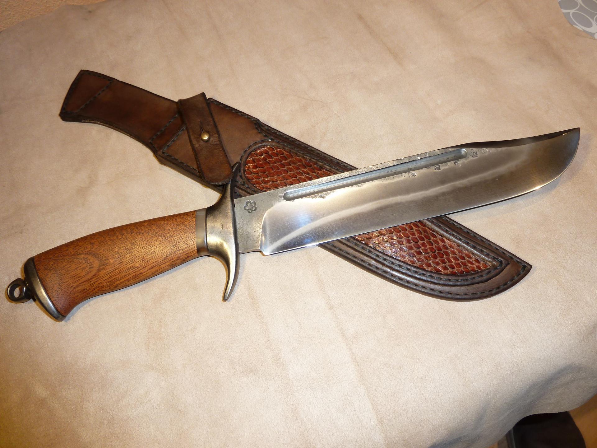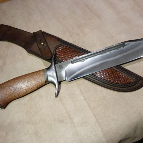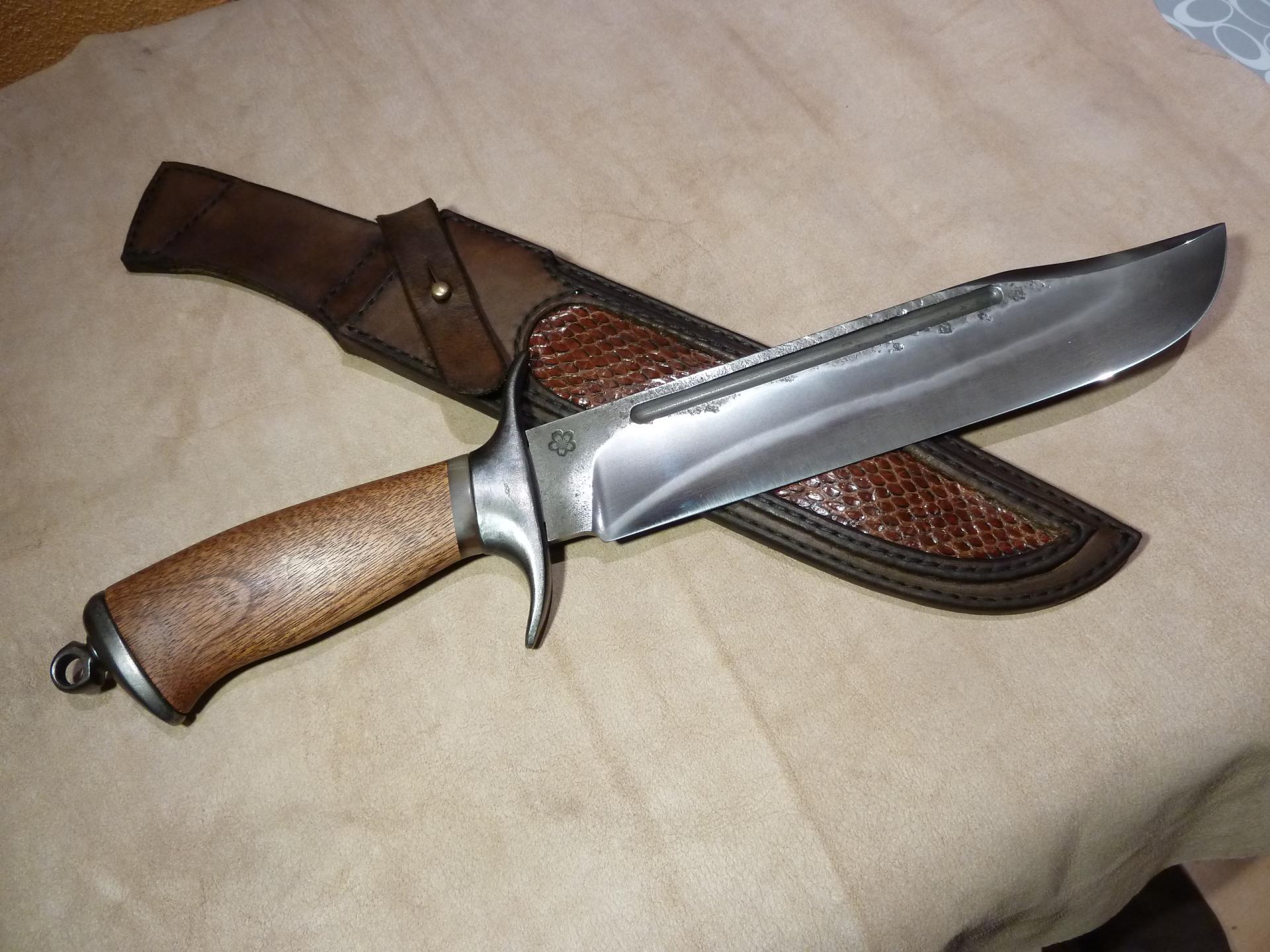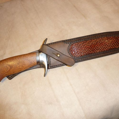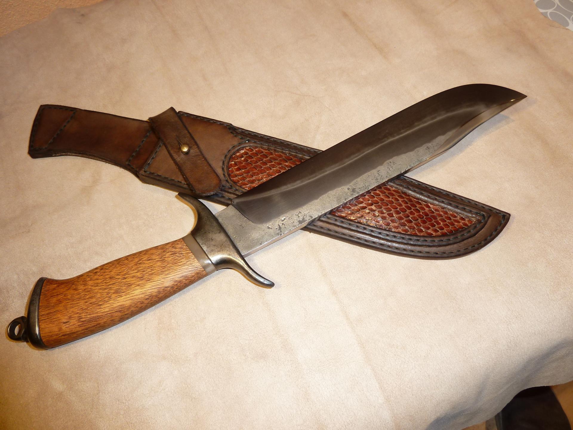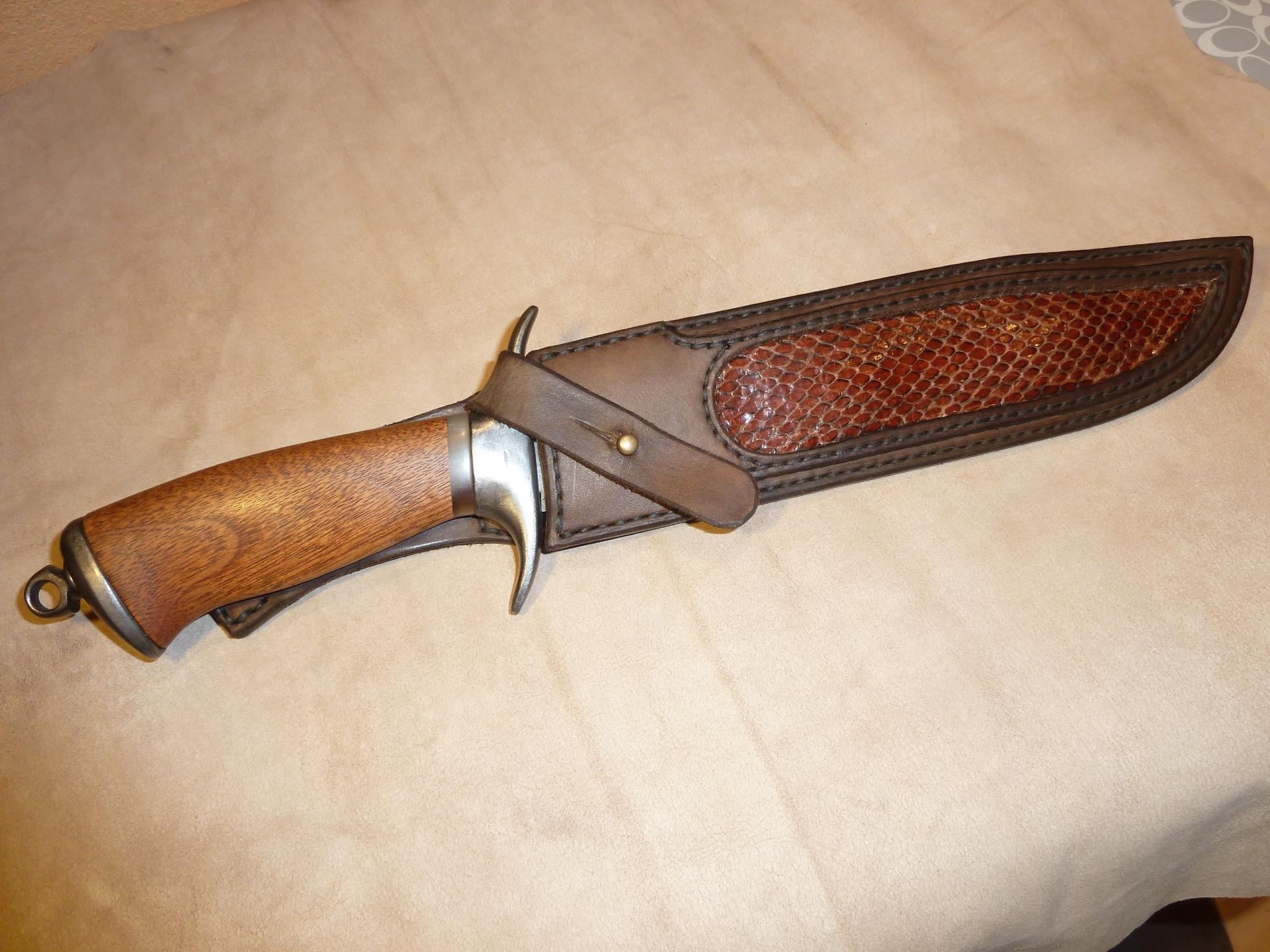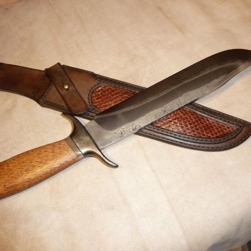 Čepel: kovaná parciálně kalená 19191 Rukojeť: záštita i záslepka patinovaná ocel , vodní buvol mahagon Pouzdro: hovězina, hadí kůže