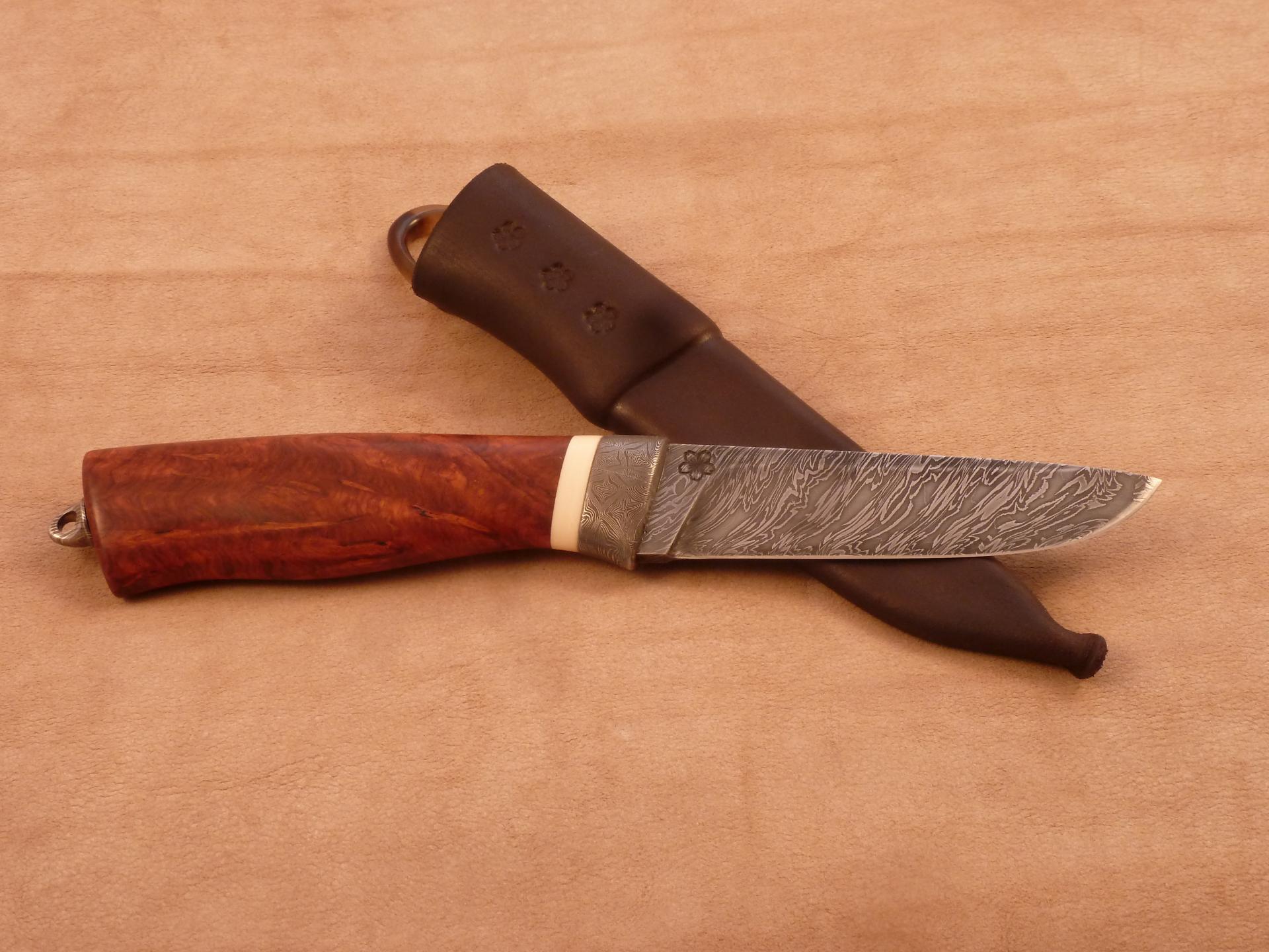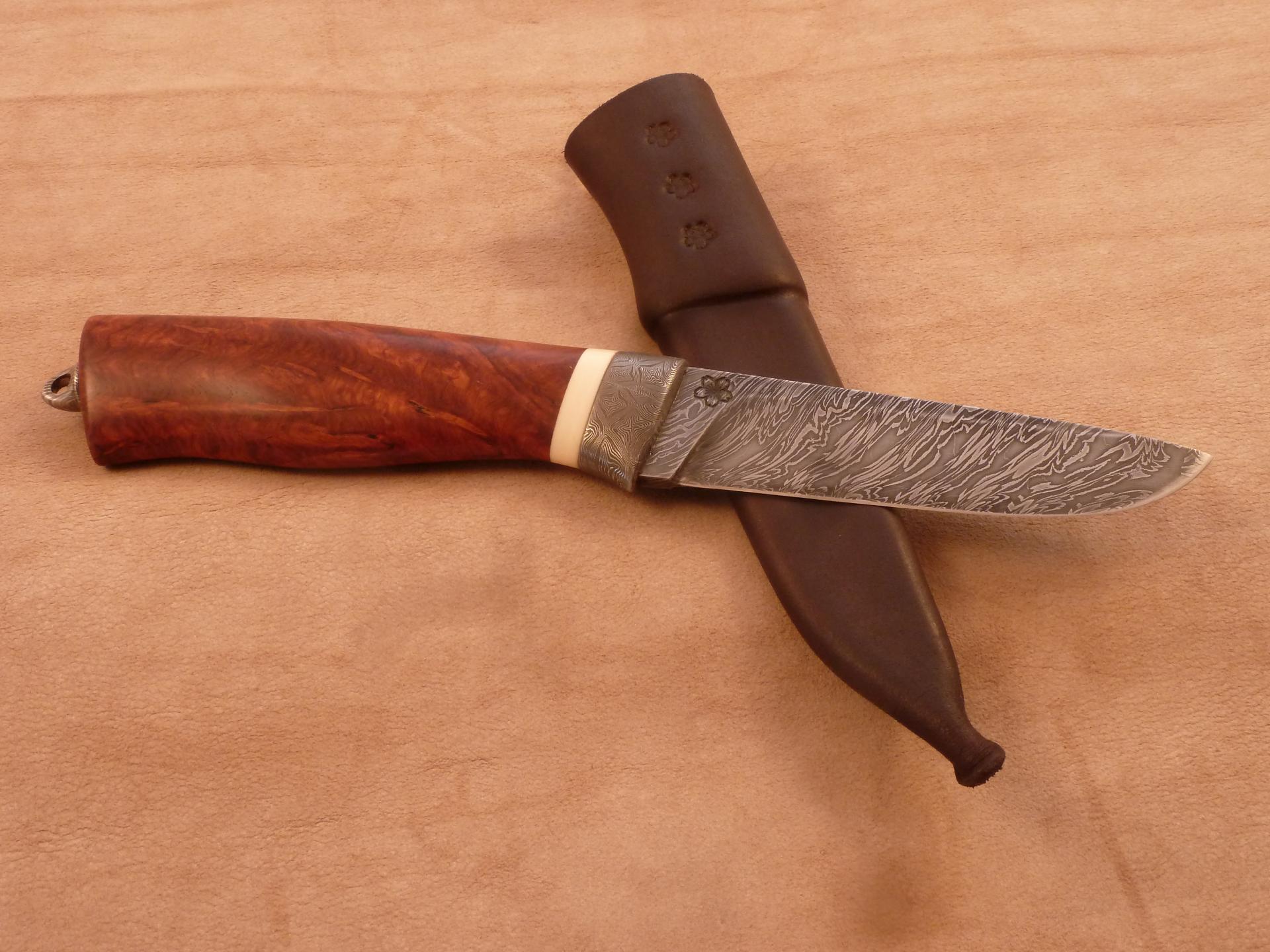 Čepel: kantovej torzní damašek Rukojeť: záštita mozajkovej damašek, mamut, ambiona Pouzdro: hovězina, rohovina z albín vodního bůvola filipíny