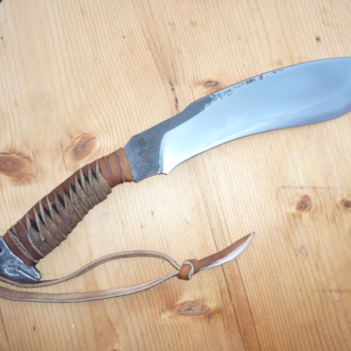 čepel vykována z vinuté pružiny z lokomotivy, parciálně kalená