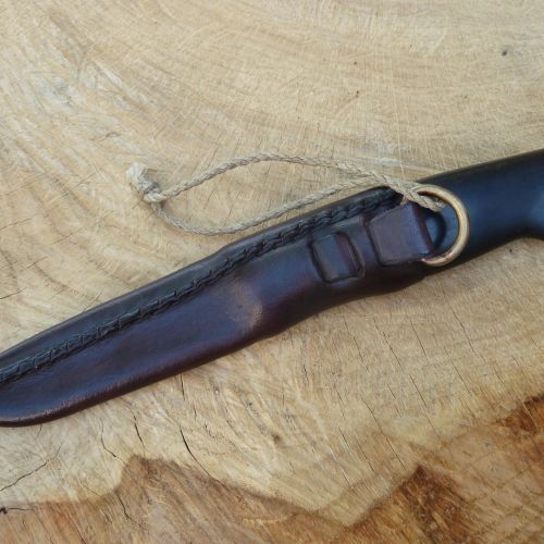 Čepel: sendvič 12050na bocích, střed stará ocel z břitu mostní váhy Rukojeť: rejnočí kůže a kozinka Pouzdro: hovězina
